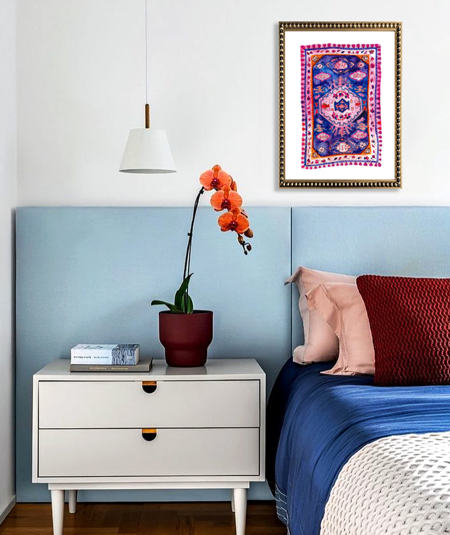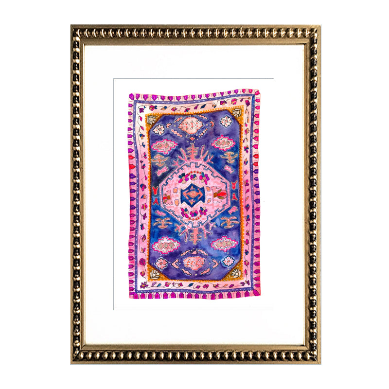 Cuadro reproducción de pintura en acuarela de diseño marroquí con marco de perlas dorado.