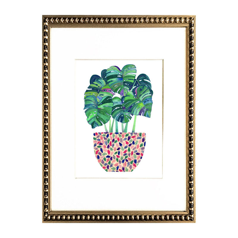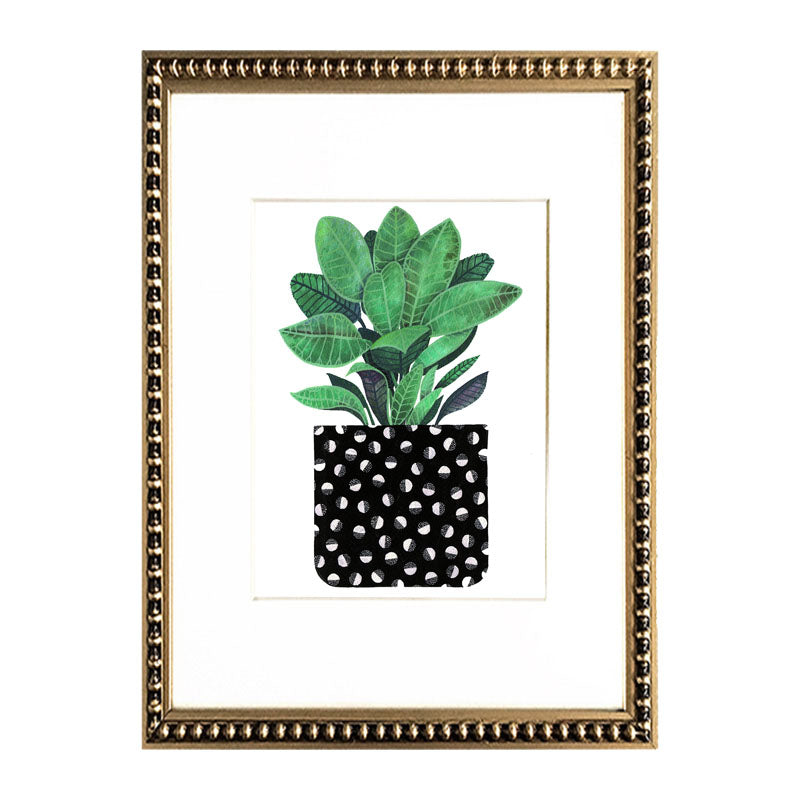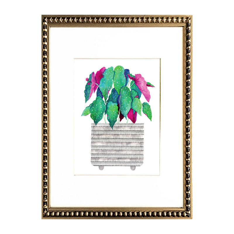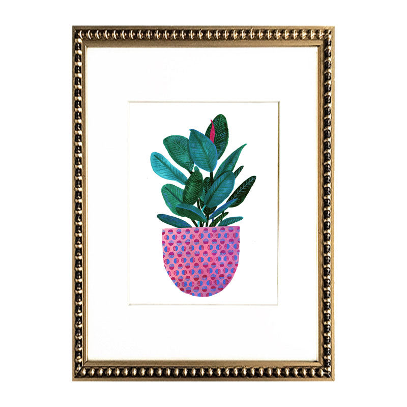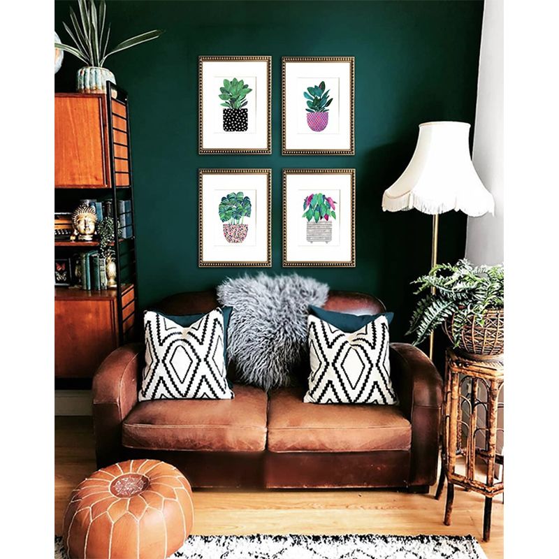 Composición de 4 cuadros de botánica con paspartú blanco y marco perla dorado.