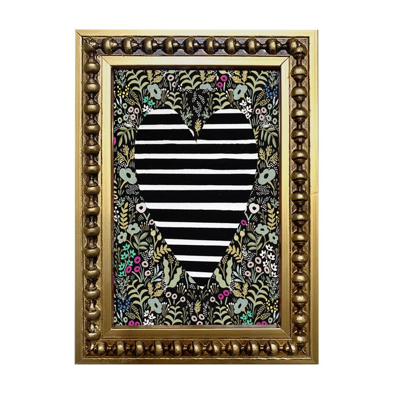 Mini cuadro reproducción de corazón en técnica mixta con marco perla dorado delgado.