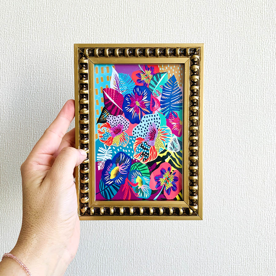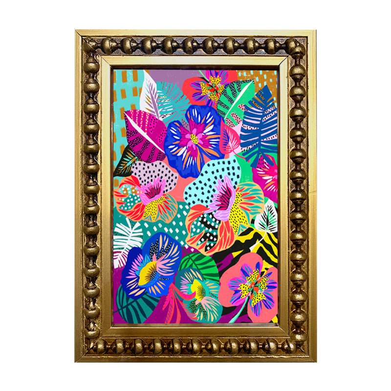 Mini cuadrito de diseño digital impreso en alta resolución, en marco de madera con perlas color dorado.
