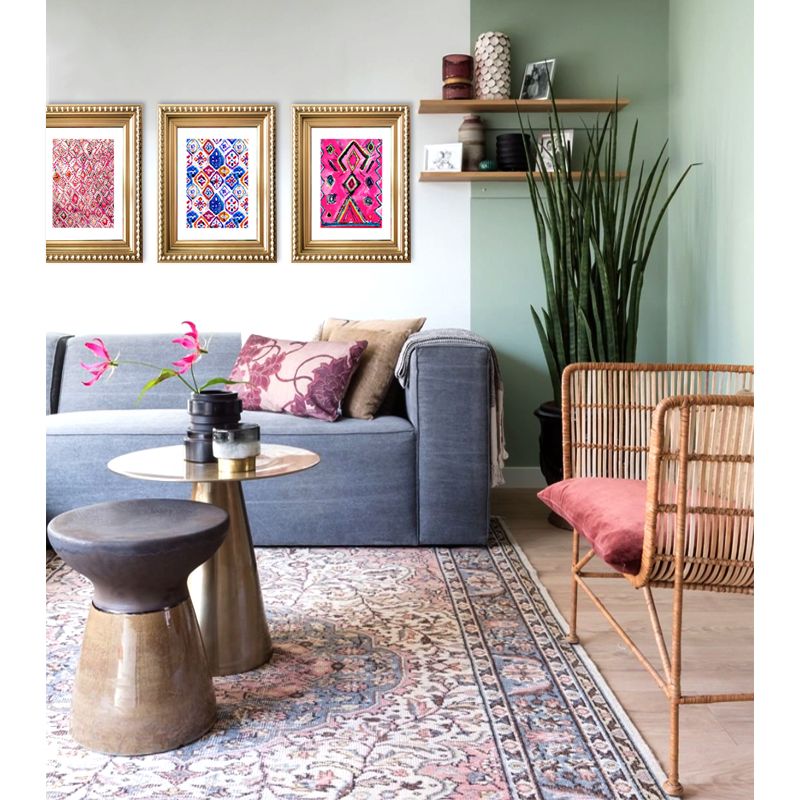 Cuadro pintura reproducción de acuarela en motivo marroquí con marco perla dorado de 4 cm de ancho.