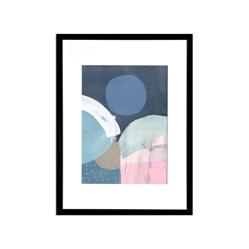 Cuadro reproducción de ilustración digital en color, paspartú blanco y marco negro.