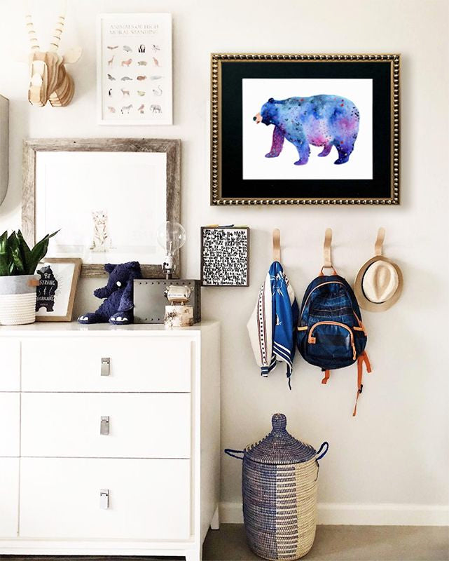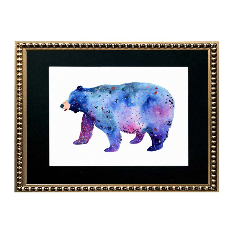 Cuadro reproducción de acuarela y tinta con paspartú negro y marco de perlas dorado.