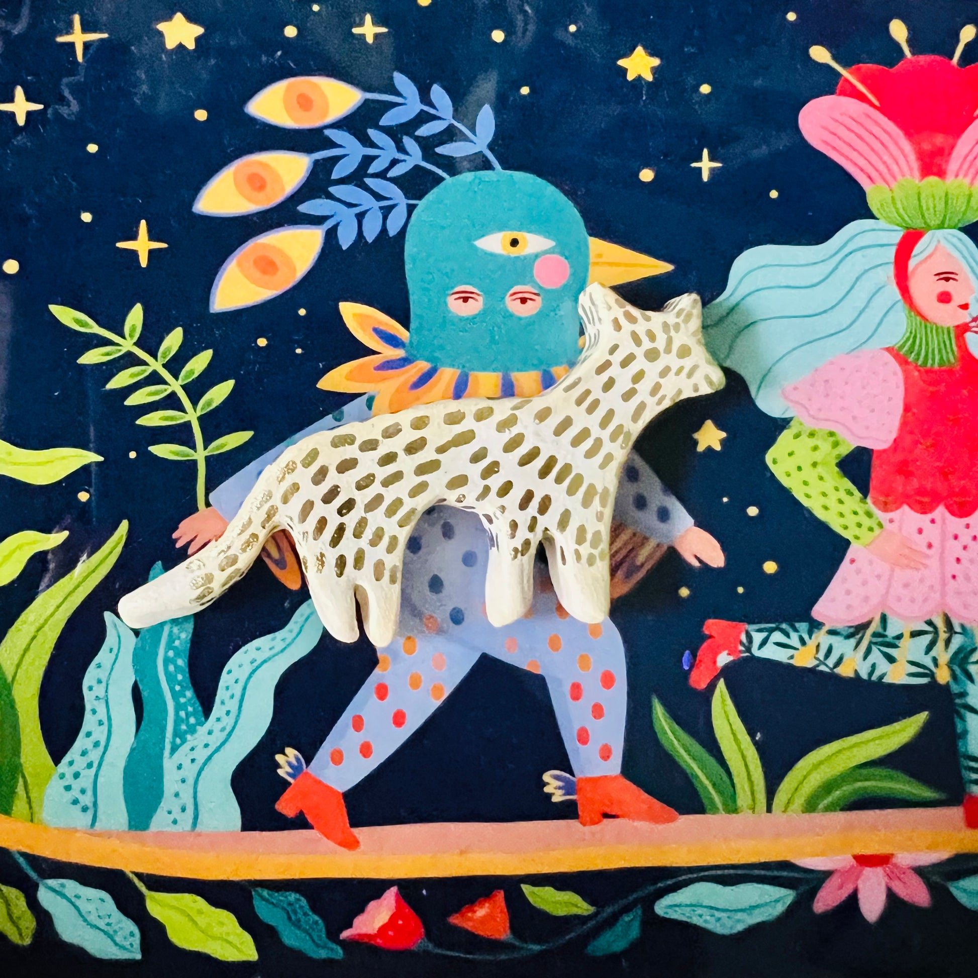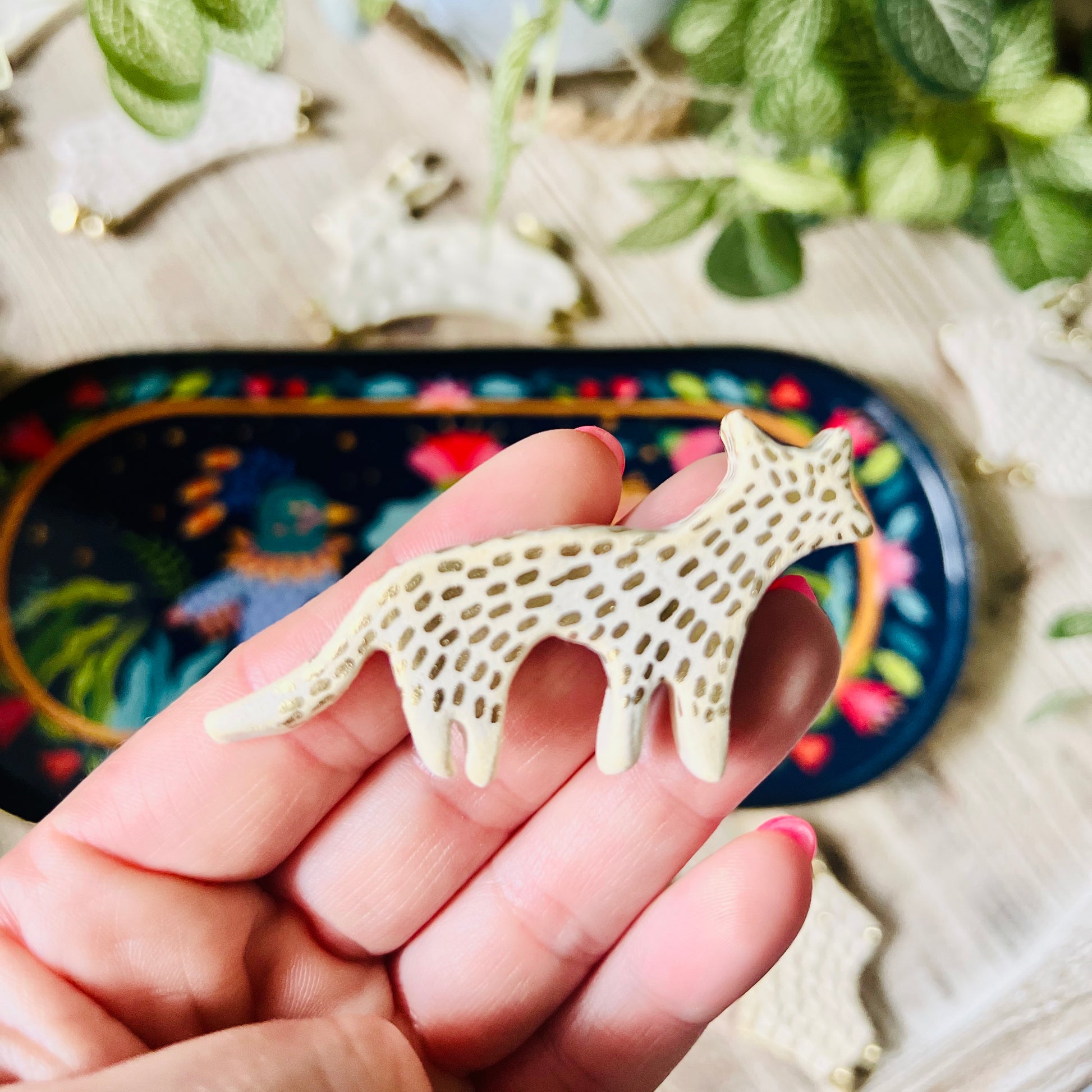 Zorrito hecho en cerámica gres, esmaltado en color blanco con detalles en dorado con textura.